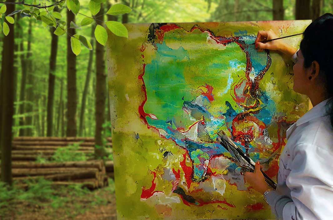 Yanelis aime l'art abstrait. Elle l'a su tout jeune. Elle ne produit pas de tableaux traditionnels, elle peint et son inconscient fait le reste.