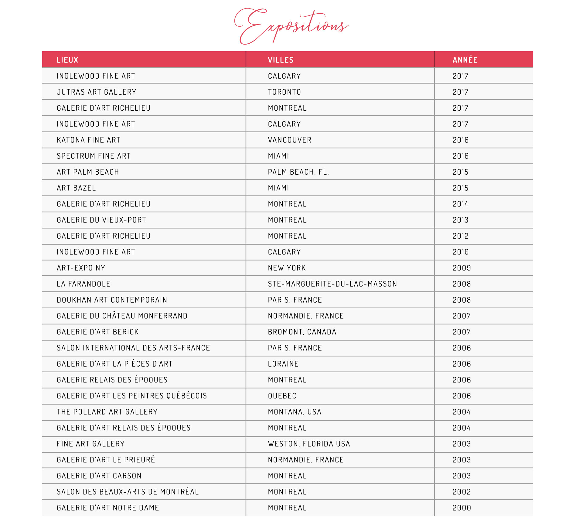 valeur montante. Elle présente ses tableaux en exposition permanente à la Galerie Richelieu, de Montréal.